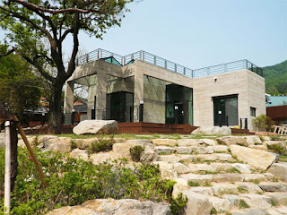 A single story house rises in the middle of a picturesque area of Korea’s fifth largest city – Gwangju. Named House of San-Jo, this home gathers mountain views and green surroundings and visually funnels them inside, through a series of voids and glazed openings. (courtsey by: www.freshome.com)